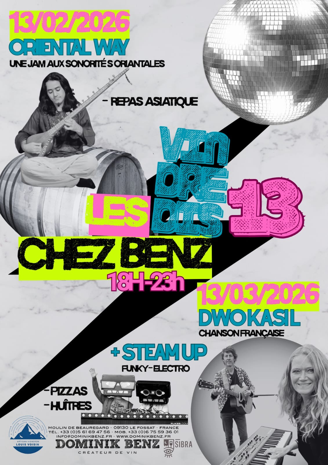 Nous avons le grand plaisir de vous présenter Dwokasil (chanson française) et Steam-Up (funky-electro) au domaine !